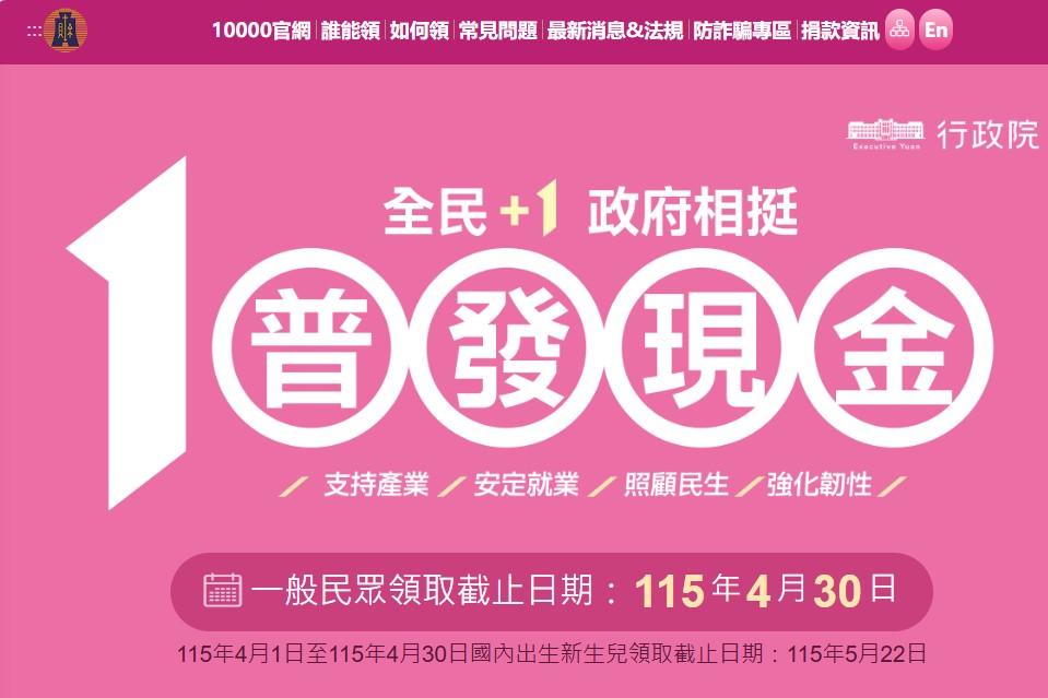 1、「全民+1 政府相挺」普發現金廣宣網站,今(23)日20時起正式上線。